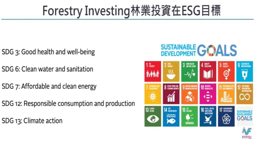 而林業投資在ESG裏面的目標,由於伐木時也要需要用水,或運輸上面有機會影響到水資源,所以品評時也要留意這個因素。