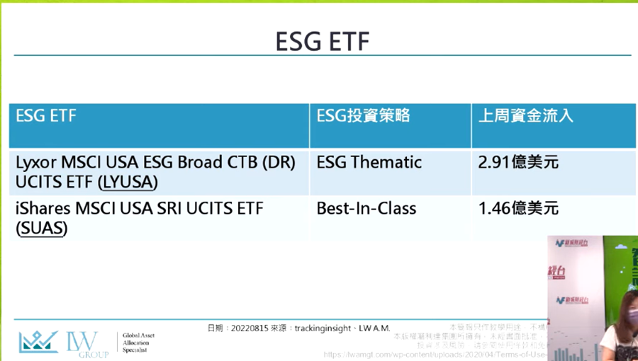 在更早的兩個星期,研究報告又指出,關於人權的ETF的資金流比較多,原因是俄烏事件爆發,令大眾的投資目光,除了在關注環境上,也開始思考人權、貧窮問題等,也引發會否影響能源、清潔水等「E」元素有關系。