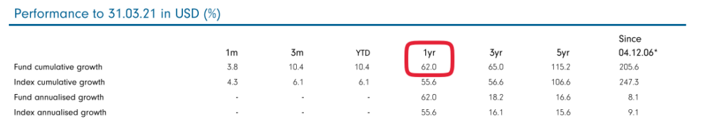 今天用了富達基金的美國增長基金做一個比較。同一隻基金,同一個資產配置,用英鎊計價的一年回報為47.5%,用英鎊加了對沖計價的一年回報為61.2%,用美元計價的一年回報為62%。