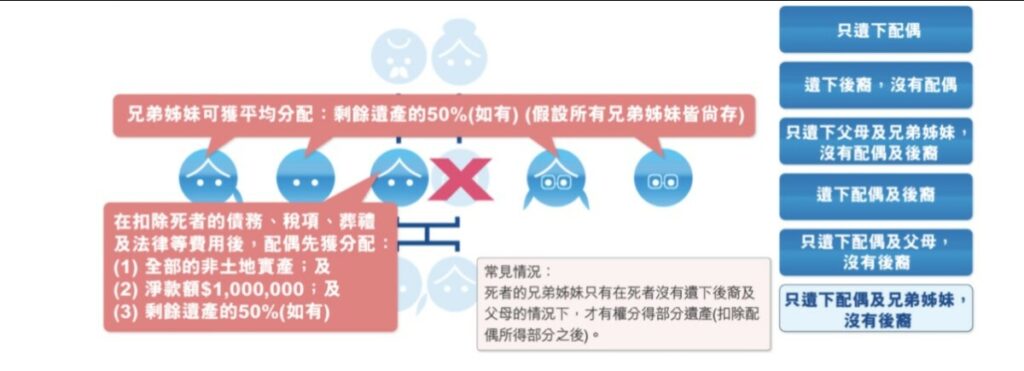 6. 只遺下配偶及兄弟姊妹,沒有後裔:
