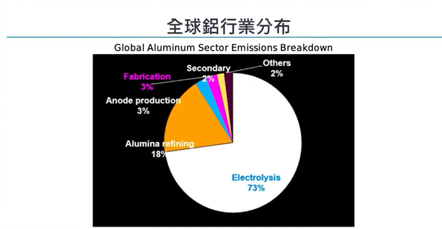 全球鋁行業分布,當中電子產品約佔七成,而傳統鋁業如建築、汽車消耗也不及電子產品,因為電子產品如電視機、雪櫃、微波爐、手機、平枝電腦等消耗量和拋棄率較高,令到個碳排放提升。