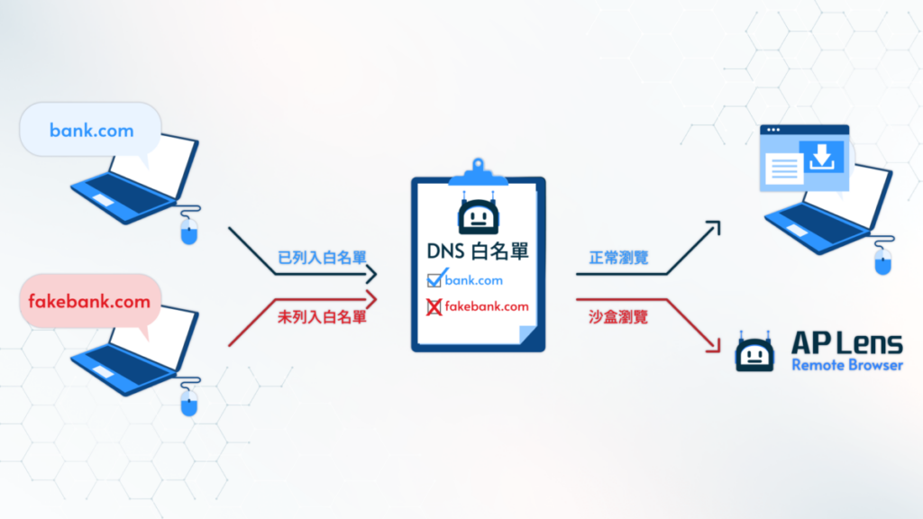 在與客戶的對話之中,Antony發現最主要的原因在於員工無法分辦網站或電郵的真偽。「一般大企業都會每三個月或半年對員工進行培訓,但由於駭客所採用的行騙技當日新月異,換言之公司的培訓要持續更新,可說是一個無止境的工作,但這對中小企業來說成本相當高,因此令我們決定 開發DNS白名單。而即使網站不在白名單上,客戶亦能使用我們的虛擬瀏覽器,只需短短5-10秒便能訪問該網站但仍然有保障。」AP Lens雲端遠程瀏覽器不但節省了企業進行持續培訓的成本及時間,同時亦能防止病毒經由網站傳播至公司電腦當中,大大提高網絡安全性,同時減低造成金錢損失的機會。