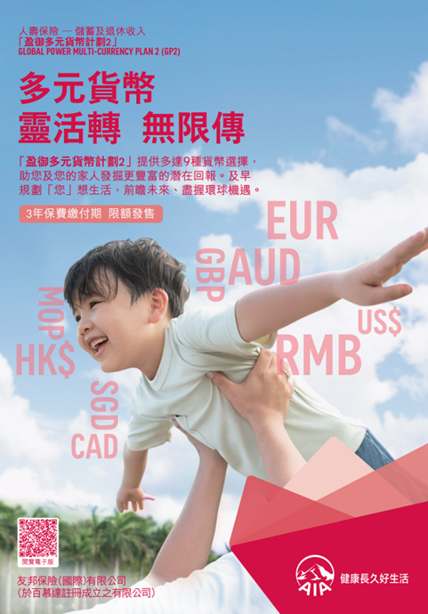 有見及此,AIA以前瞻性視野,於2021年6月推出「盈御多元貨幣計劃 」,成為首間推出多元貨幣儲蓄保險的保險公司,回應大眾對彈性理財及環球貨幣的殷切需求。產品提供多種保單貨幣選擇,以及巿場罕有更改保單貨幣選項,讓客戶達到不同人生階段的理財需要,如海外升學、計劃退休、甚或把握環球貨幣優勢等,長遠滾存財富,實踐「健康長久好生活」。
