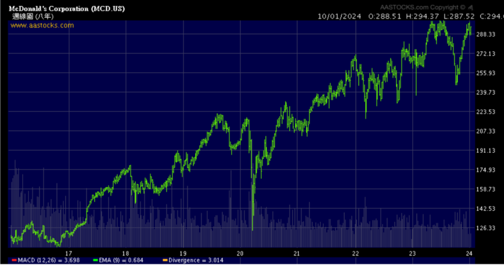 麥當勞有一定的優勢,無論品牌、商業系統、賺錢能力等都是高質素,具長線投資價值,加上業務模式令其收入與盈利都穩定,是適合中低風險投資者的類別。