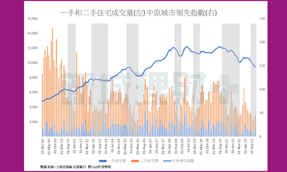 為了闡明房地產行業關鍵在成交,筆者相借友好房地產分析師完整收集的數據和分析,做了以上的一個圖。圖中,顯示了從2010年以來,一手和二手住宅成交量的變化以至同期的中原城市領先指數。