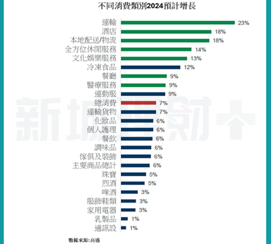在這一兩年間,不少消費股從高位回落,當中原因有許多。首先,市場持續下跌,或多或少影響了同處當地的股票。而且,一般情況下,消費股都會以市場估值溢價存在,在過去兩年的加息周期中,高估值股票受到更大的衝擊,這種估值降級 (de-rating)如果碰上公司盈利增速下降,就會令股價受到雙重打擊,出現我們過去兩年看到的場面。為什麼公司盈利增速偏偏在這時出現了拐點呢 ? 從券商多份有關消費的研究報告中可以看到,在主要的消費類別中,貨品的消費 (如衣服鞋履,家電,食物雜貨)增速放緩,而另一邊廂,消閒相關項目有著最顯著的增長,這包括餐飲,酒店,國內遠程交通和文娛節目等消費,筆者統稱之為體驗式消費。