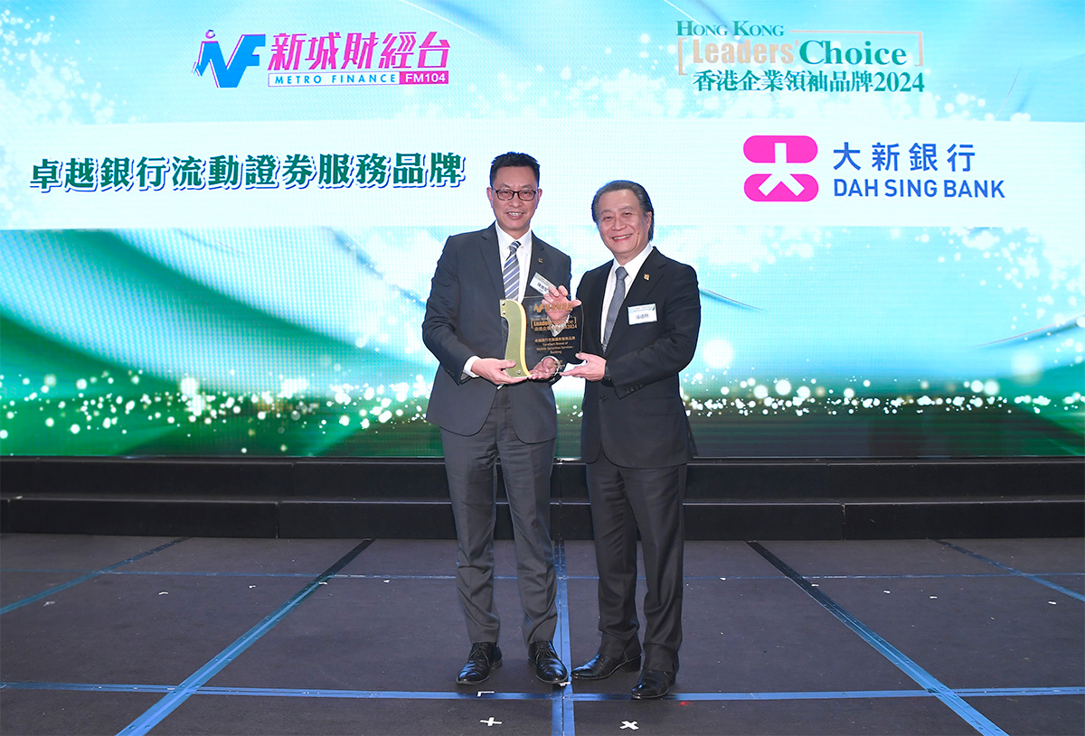 大新銀行執行董事兼集團財富管理處主管陳維堅先生獲「新城財經台」頒發「香港企業領袖品牌2024 ─ 卓越銀行流動證券服務品牌」殊榮。