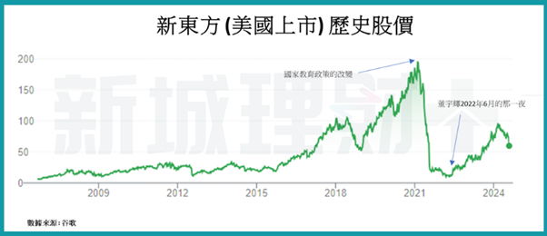 新東方(9901)原是中國內地最大的教育機構,高峰時市值超過2400億港元。但隨著國家教育政策的改變,新東方原有的商業教育服務行業經營空間已經不存在,股價下跌了超過80%。公司創始人俞敏洪只好改變原有的商業模式,進入當時興起的直播帶貨行列。願意留下的老師,披甲上陣,走到鏡頭前去賣貨,董宇輝也是當時的其中一位。