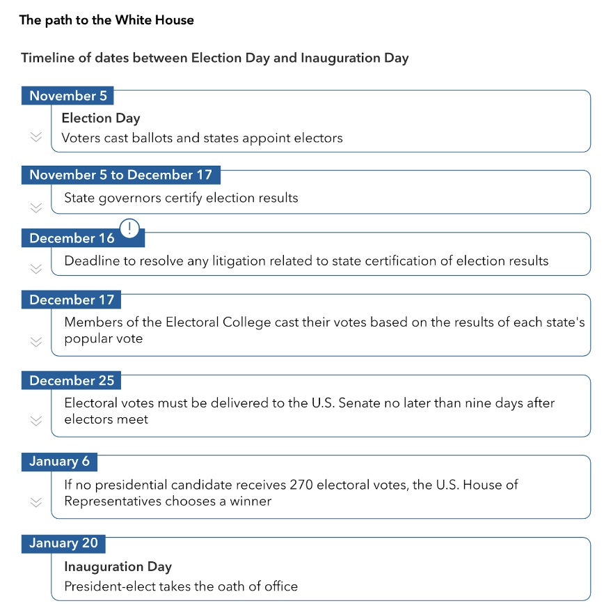選舉後的不確定性:根據資本集團 2024 年 10 月 24 日的通訊,雙方可能要求重新計票並發起法律挑戰,導致長期的不確定性。在情況明朗之前,市場不太可能對選舉結果做出明確的押注,這可能需要數週或數月的時間。