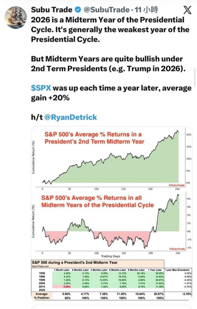 至於美股,雖然眾多分析認為總統任期第二年時,大市整體走弱,但亦統計指出,在同一個總統的任期第二年,整體股市並不會太弱,甚至按年平均來講有20%升幅【圖2】。