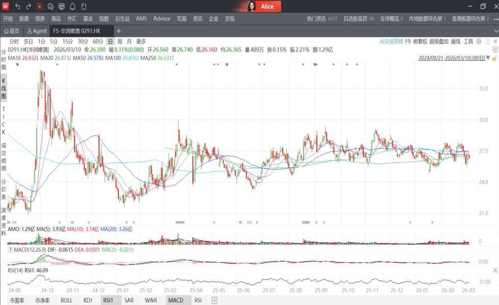 華潤啤酒(00291)